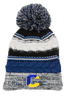 With three team colors and a large pom pom, this chunky-knit beanie will help keep you warm in the stands.