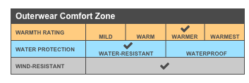 - 100% polyester knit bonded to a water-resistant film insert and a 100% polyester microfleece lining at side panels and under arms
